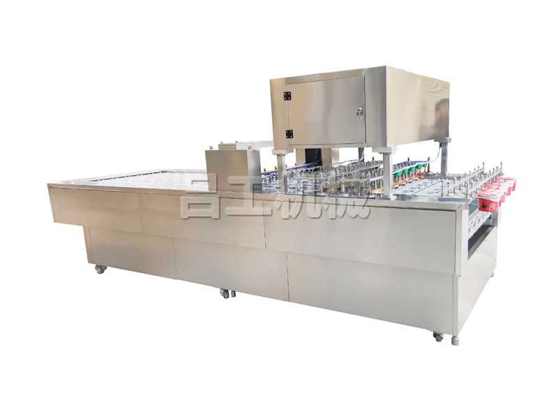 本機(jī)采用合理的機(jī)械傳動(dòng),功能齊全,灌裝、封口、切邊、制品推出,廢料收卷,印碼等自動(dòng)化工作,可節(jié)約人力,降低成本。本機(jī)有二次熱封裝置,料杯/碗/盒與封膜經(jīng)過(guò)前后二次熱封,封口牢固可靠。