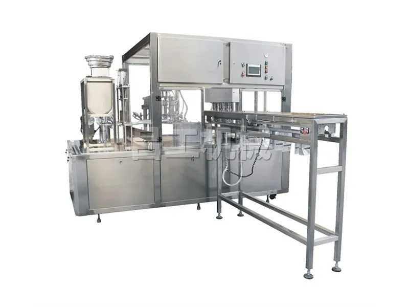 特點(diǎn):本機(jī)從自動(dòng)定位—自動(dòng)吹氣—自動(dòng)定量兩次灌裝—自動(dòng)清洗—自動(dòng)下蓋—自動(dòng)旋蓋—自動(dòng)出袋